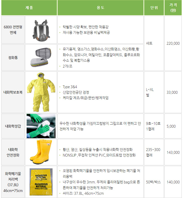 유독물 방제장비 가격표